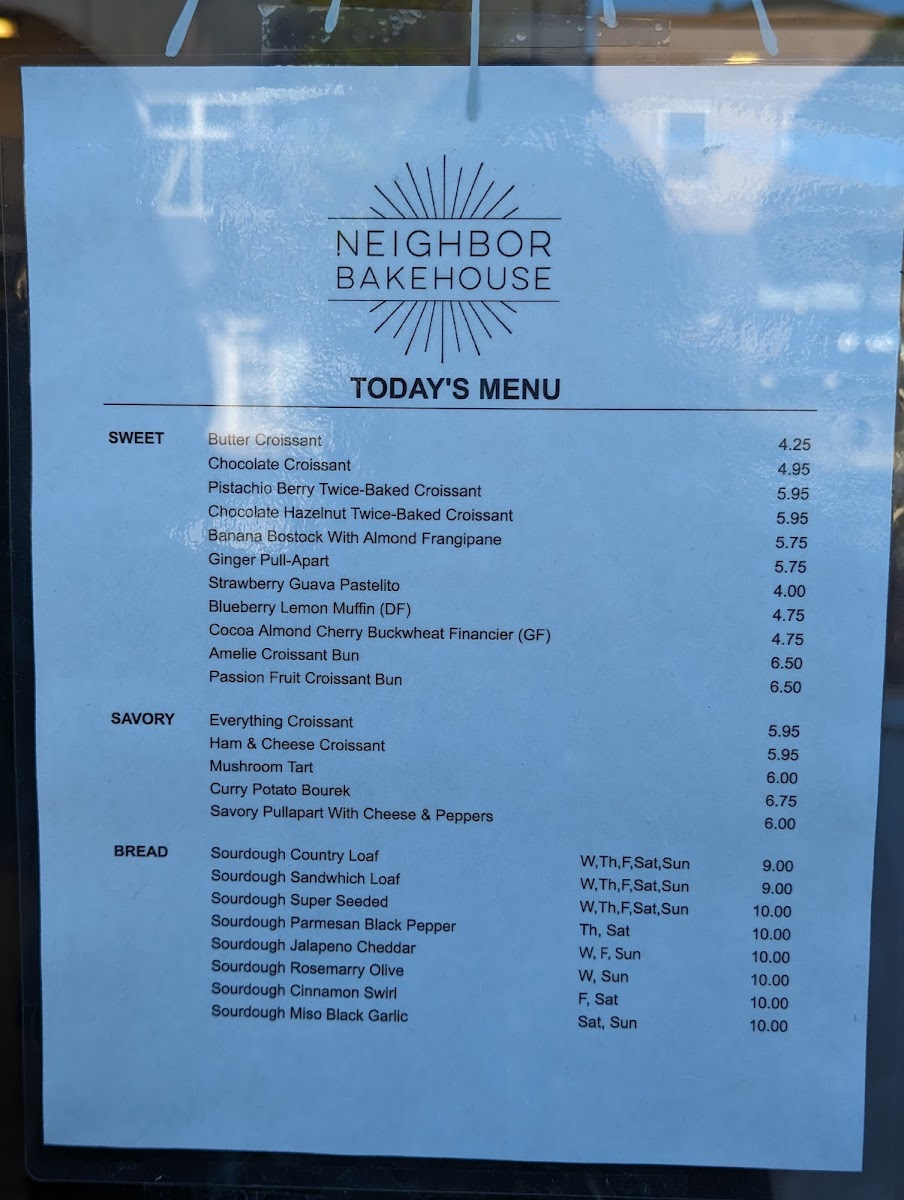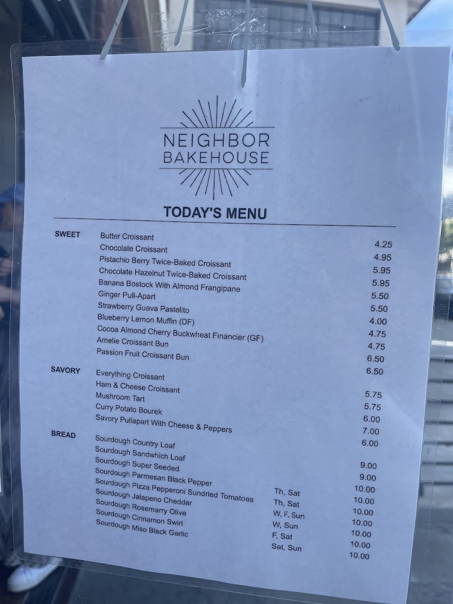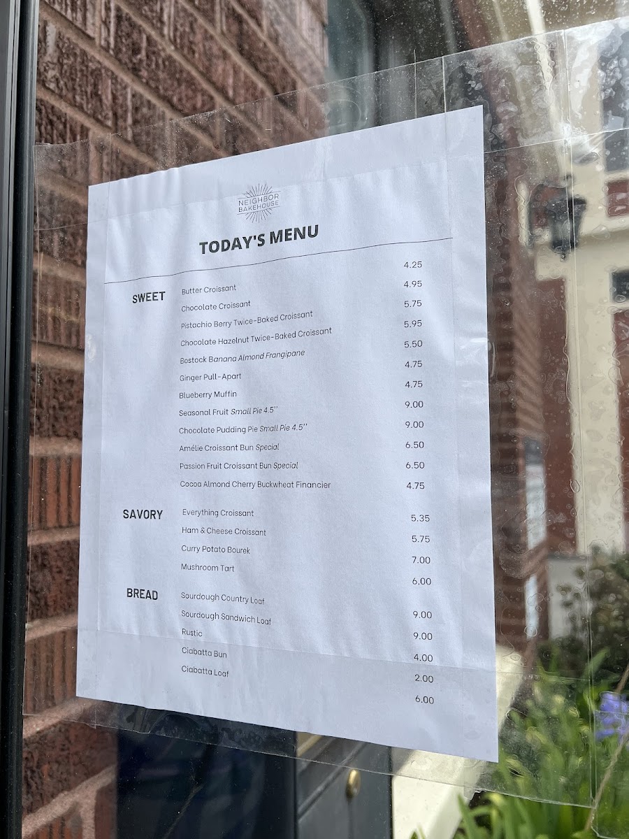 Neighbor Bakehouse Menu