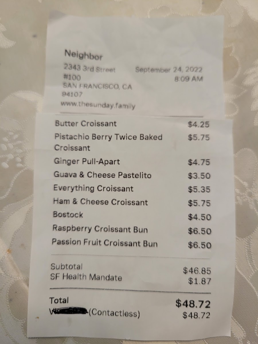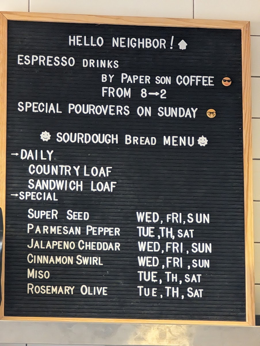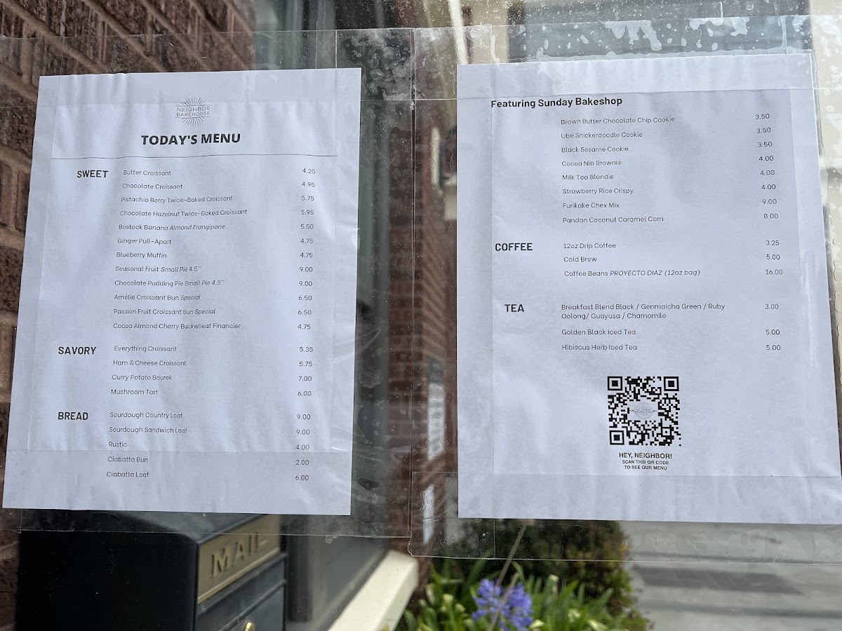 Neighbor Bakehouse Menu